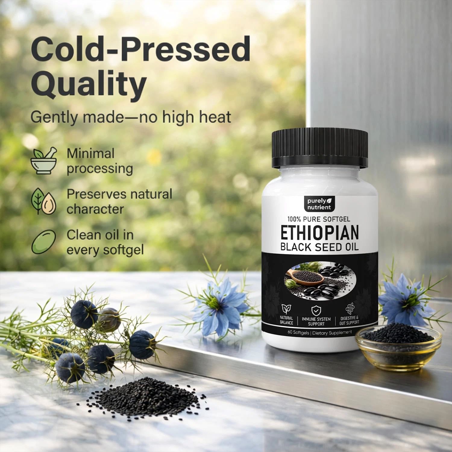 【Organic Non-GMO Gluten-Free】Purely nutrient Ethiopian blackseed oil, Softgels fit easily into everyday routines—simple ingredients and a clean formula you can stick with. If you’re looking for purely Ethiopian black seed oil, this daily format is an easy fit.