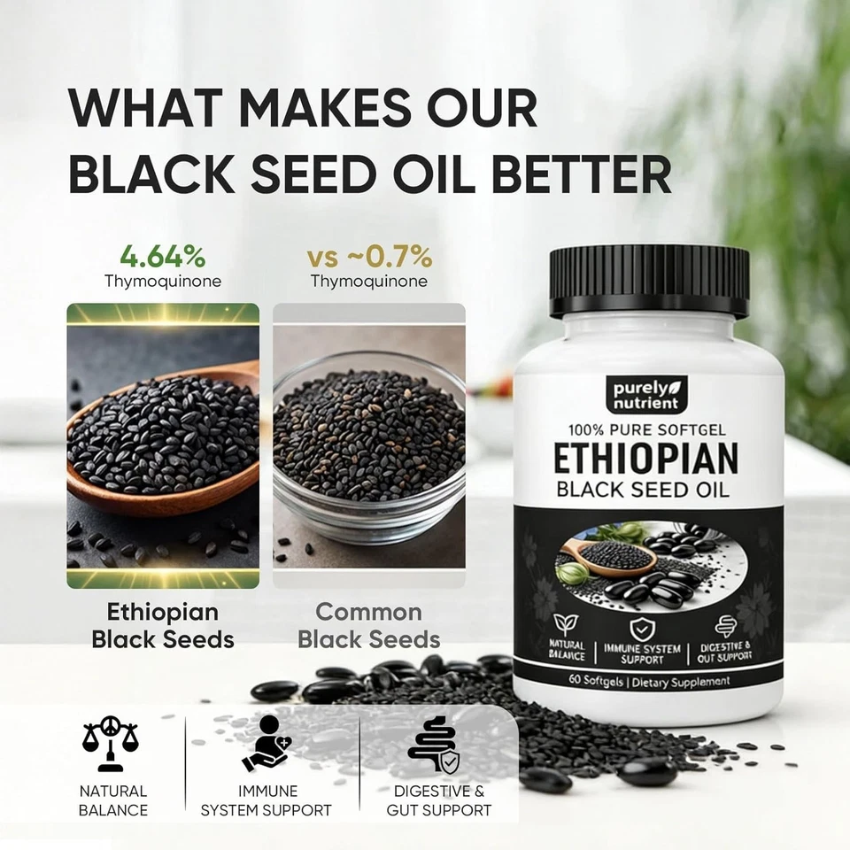 【Organic Non-GMO Gluten-Free】Purely nutrient Ethiopian blackseed oil, Softgels fit easily into everyday routines—simple ingredients and a clean formula you can stick with. If you’re looking for purely Ethiopian black seed oil, this daily format is an easy fit.